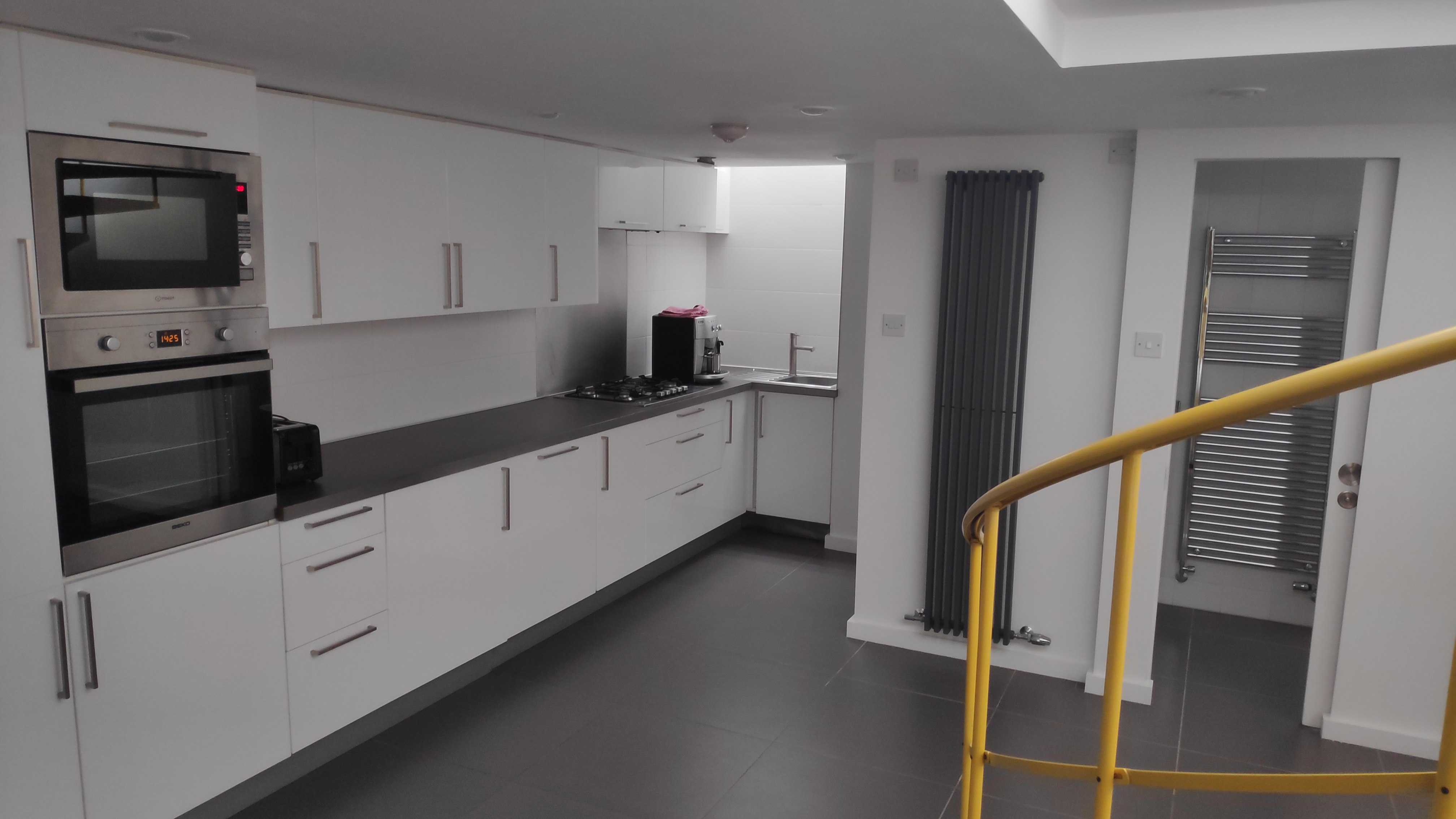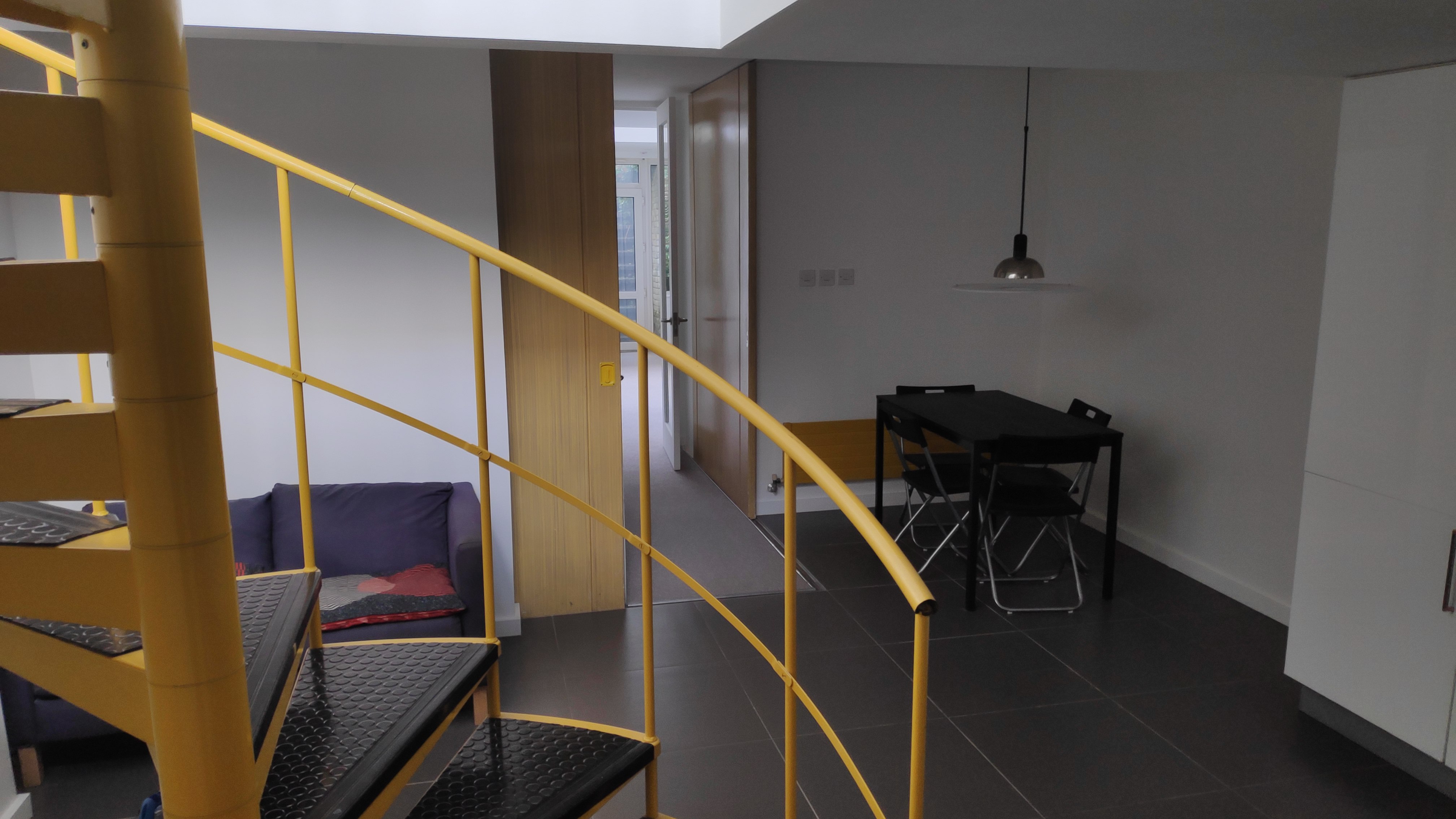 Split-level open plan two bathroom ground floor and basement flat with private patio.